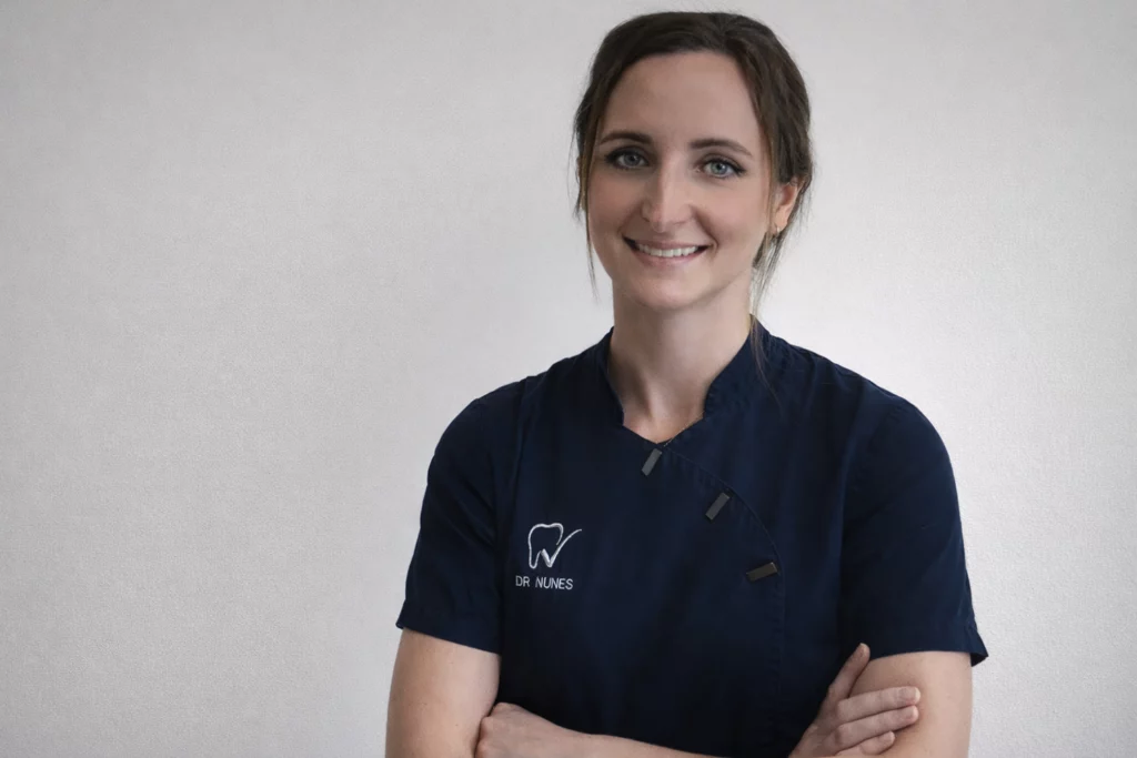 Le Docteur Marie Nunes, chirurgien-dentiste diplômée de la Faculté de chirurgie dentaire de Strasbourg en 2017, vous accueille au sein du Cabinet Dentaire du Val Doré avec une approche à la fois rigoureuse et bienveillante. Attachée à la qualité des soins et à la relation de confiance avec ses patients, elle propose une prise en charge complète intégrant la santé bucco-dentaire, la fonction et l’esthétique du sourire.